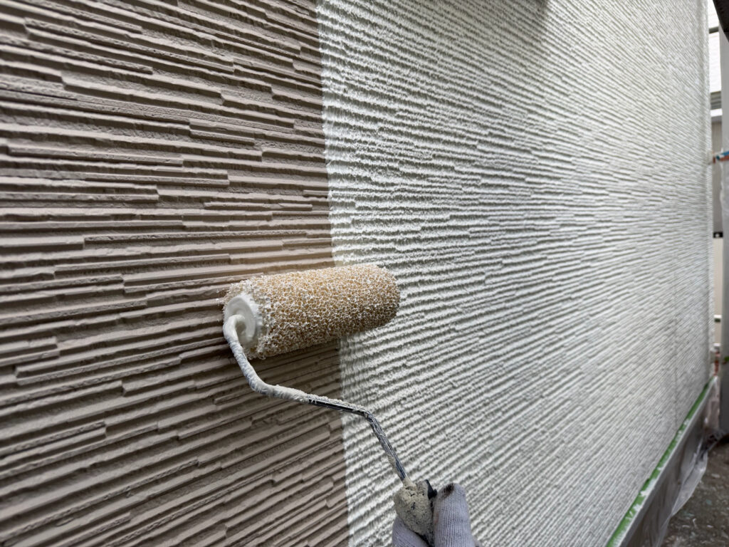 膜厚を付けていく過程で外壁が少しごつごつしますがこの厚みで断熱塗料の膜厚を付けていきます。
