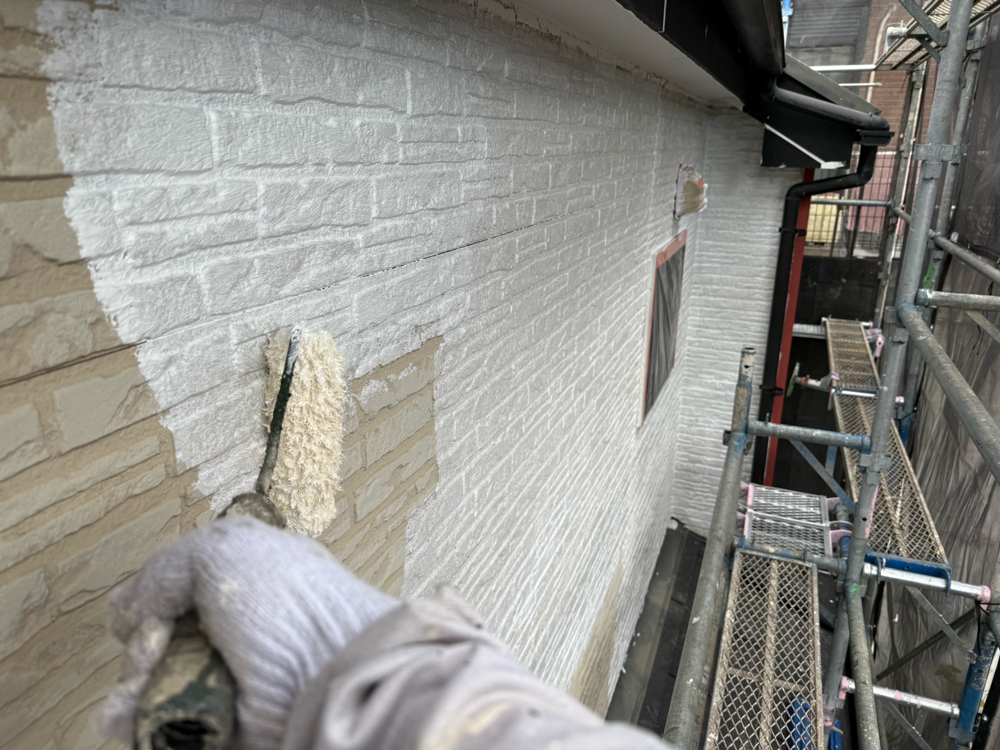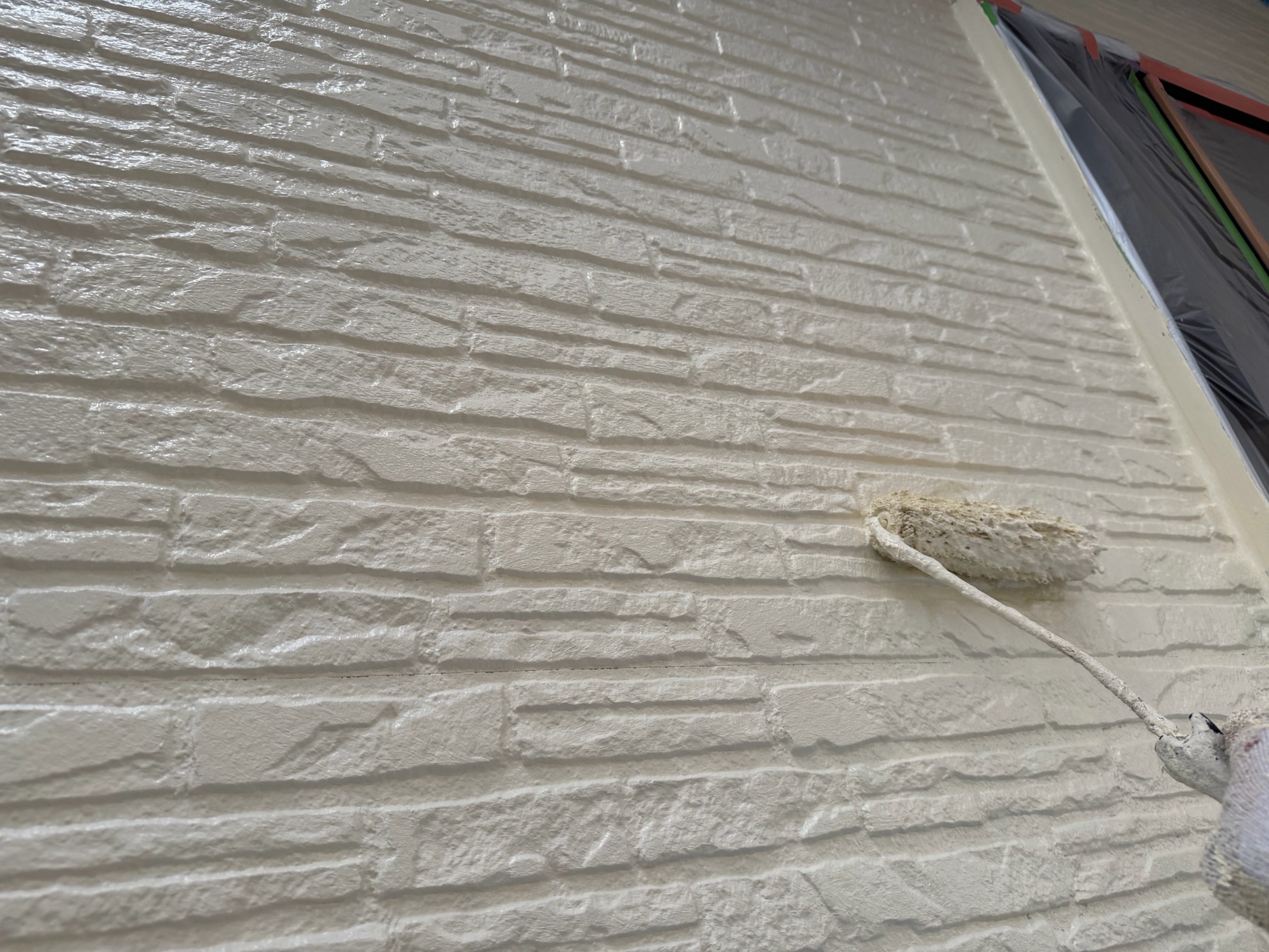 現場親方ブログ外壁塗装です。やっと秋らしくなってきましたね、高城塗装店、朏島です。今日は外壁塗装で、まずは下塗です。中塗です。上塗です。外壁塗装は、建物の外壁に新しい塗料を施すことで、保護機能を与え、 美観を保つための重要な作業です。なので適切なタイミングで定期的なメンテナンス行うことをおすすめしています。塗装をお考えのお客様はぜひ、お気軽に高城塗装店へご相談下さいね!無料お見積はこちら